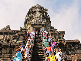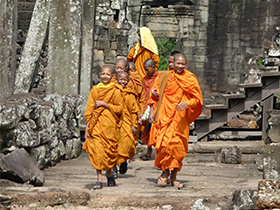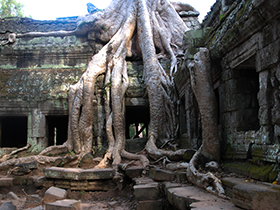 早餐后,游覽高棉王國古老的都城—大吳哥城:【巴戎廟】(游覽時間約為40分鐘)(巴戎廟它位于吳哥通王城的正中央,這些微笑的面容據說是加亞華曼七世與佛陀尊容的融合體)。【十二生肖像】(游覽時間約為10分鐘),【斗象臺】(游覽時間約為10分鐘)(斗象臺規模很大,全是用巨石壘成的很大一片建筑,在過去是舉行慶典儀式的地方,也是皇族政要迎賓檢閱的地方)。【巴本宮】最不能錯過的是墻上精美的巴本式風格浮雕,浮雕內容和印度神話有關,也有一些高棉人的日常生活片段,細膩的雕刻躍然于眼前。古墓麗影的拍攝基地——【塔普倫寺】(游覽時間約為60分鐘)(位于吳哥窟東部,始建于12世紀末,是賈亞瓦曼第七位國王為紀念他母親而建造,不過現在塔普倫寺帶給您更多的是樹抱石的那種奇觀。)